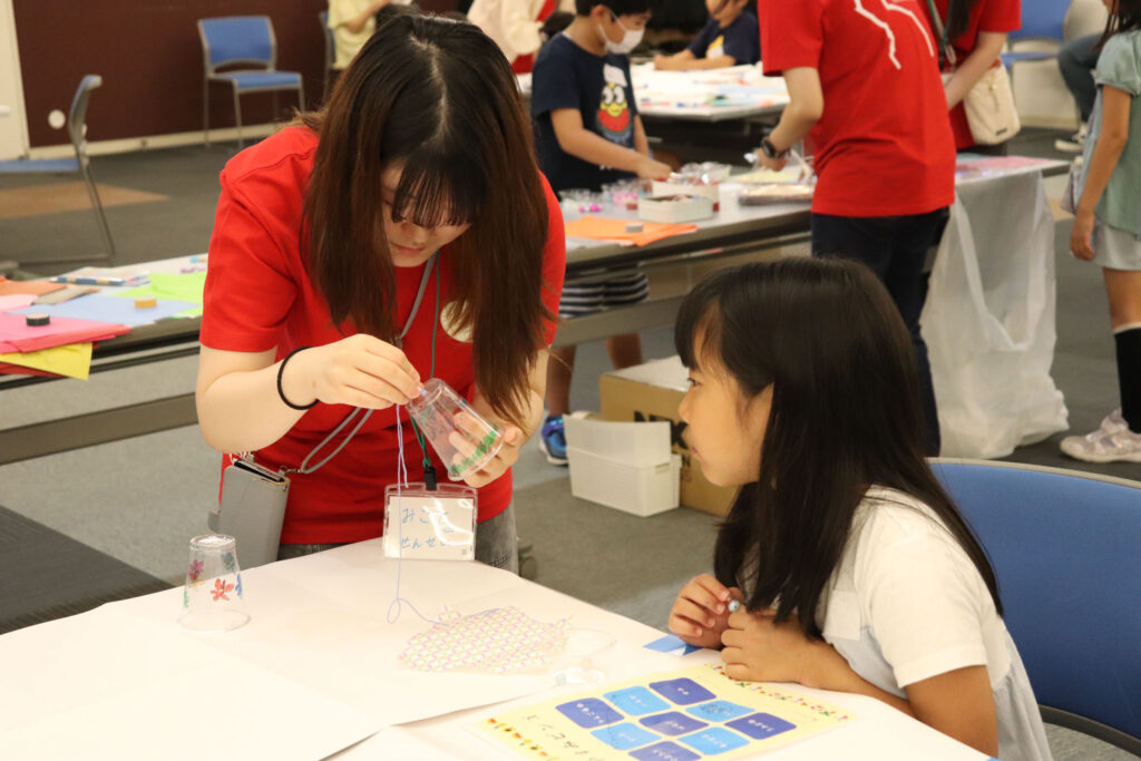 市内外から集まった小学生17名が参加し、紙コップやクリアカップに夏らしい絵を描いたり、色紙やテープを貼ったり…🎨