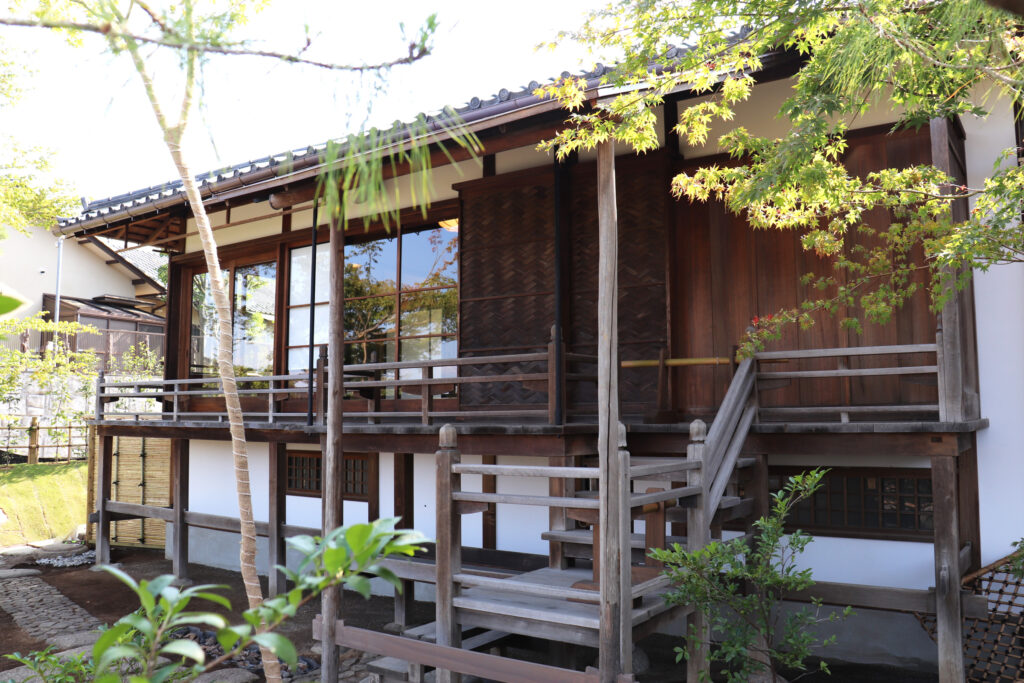韮崎市出身の実業家・小林一三とも茶の湯を通じて交流のあった、株式会社荏原製作所の創設者・畠山一清(雅号:即翁)が、東京都港区に昭和27年頃建設した茶室です。当時の茶の湯文化を伝える貴重な建造物で、韮崎市の指定文化財に指定されています。