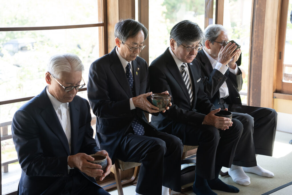 茶会では、大村博士と妻の文子さんの思い出の茶器が用いられ、和やかな雰囲気の中、心のこもったお茶がたてられました🍵