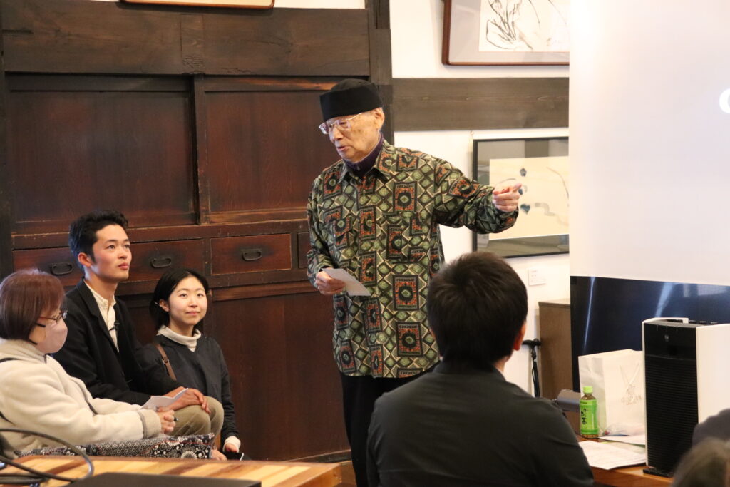 大村智博士のご挨拶のあと、講師の田中造園・田中宏明さんより、公園の活用アイデアをご提案いただきました。