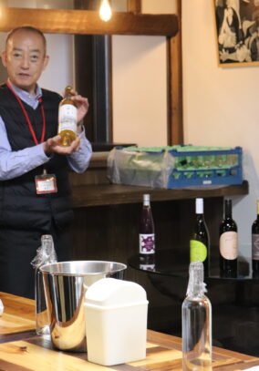 学芸員による企画展ギャラリートークの後、螢雪寮(ミーティングルームぜんぽう)でワイン講座を行いました。講師は、本坊酒造株式会社マルス穂坂ワイナリー ワインバー&ショップ支配人の佐藤靖氏です!