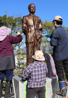 11月13日(水)・23日(土)、「幸福の小径」に設置している彫刻作品11体のメンテナンスを、美術館職員と協力員(ボランティアスタッフ)の数名で行いました!