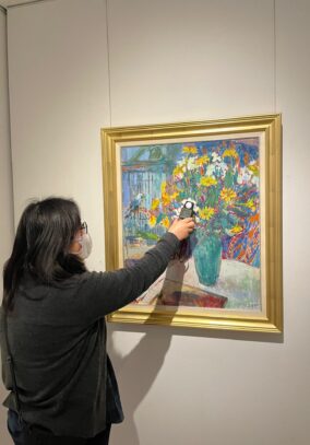 照明は、作品の技法によって照度計で測りながらスポットライトの明るさを調整します💡
